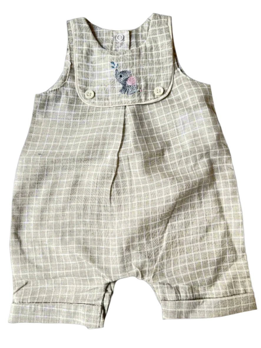 Little Explorer Checked Romper with Embroidered Elephant – Newborn (000)