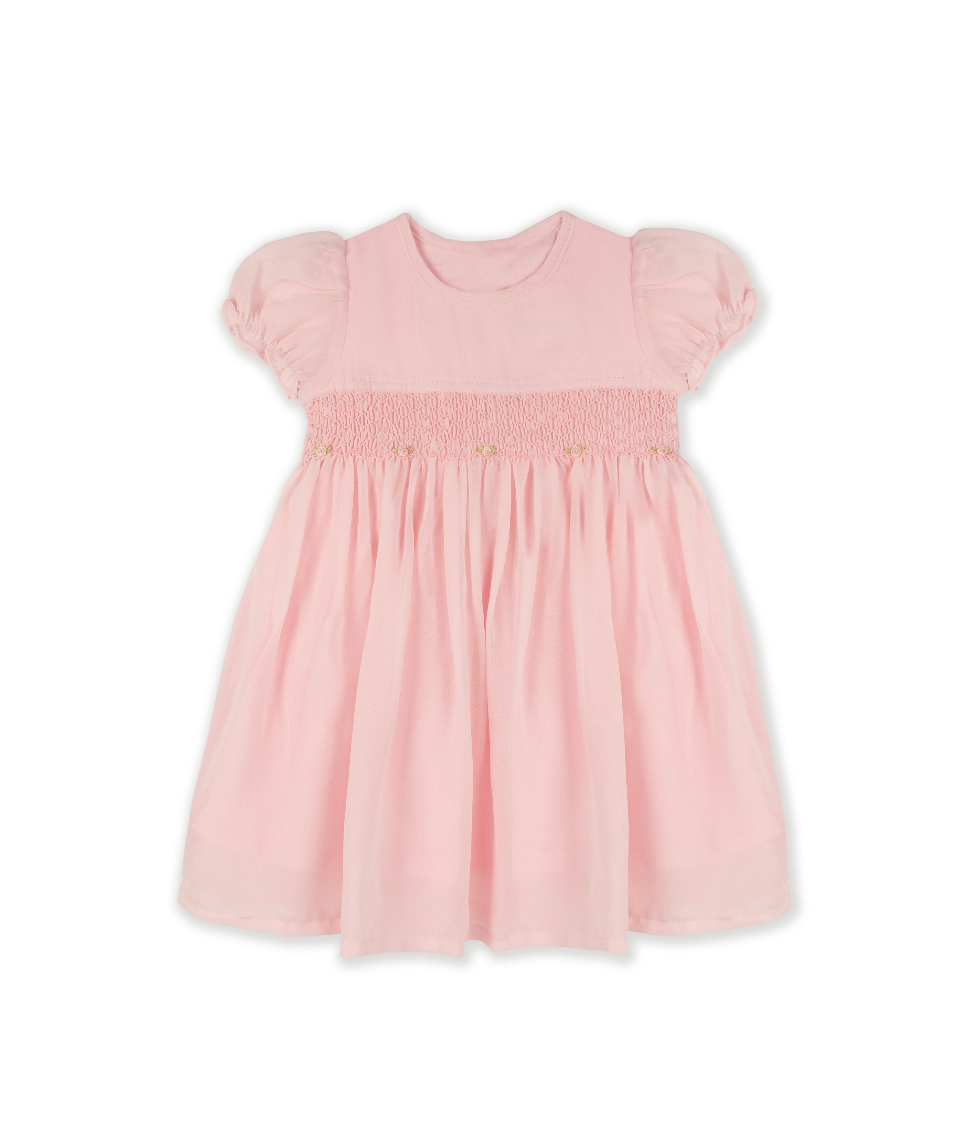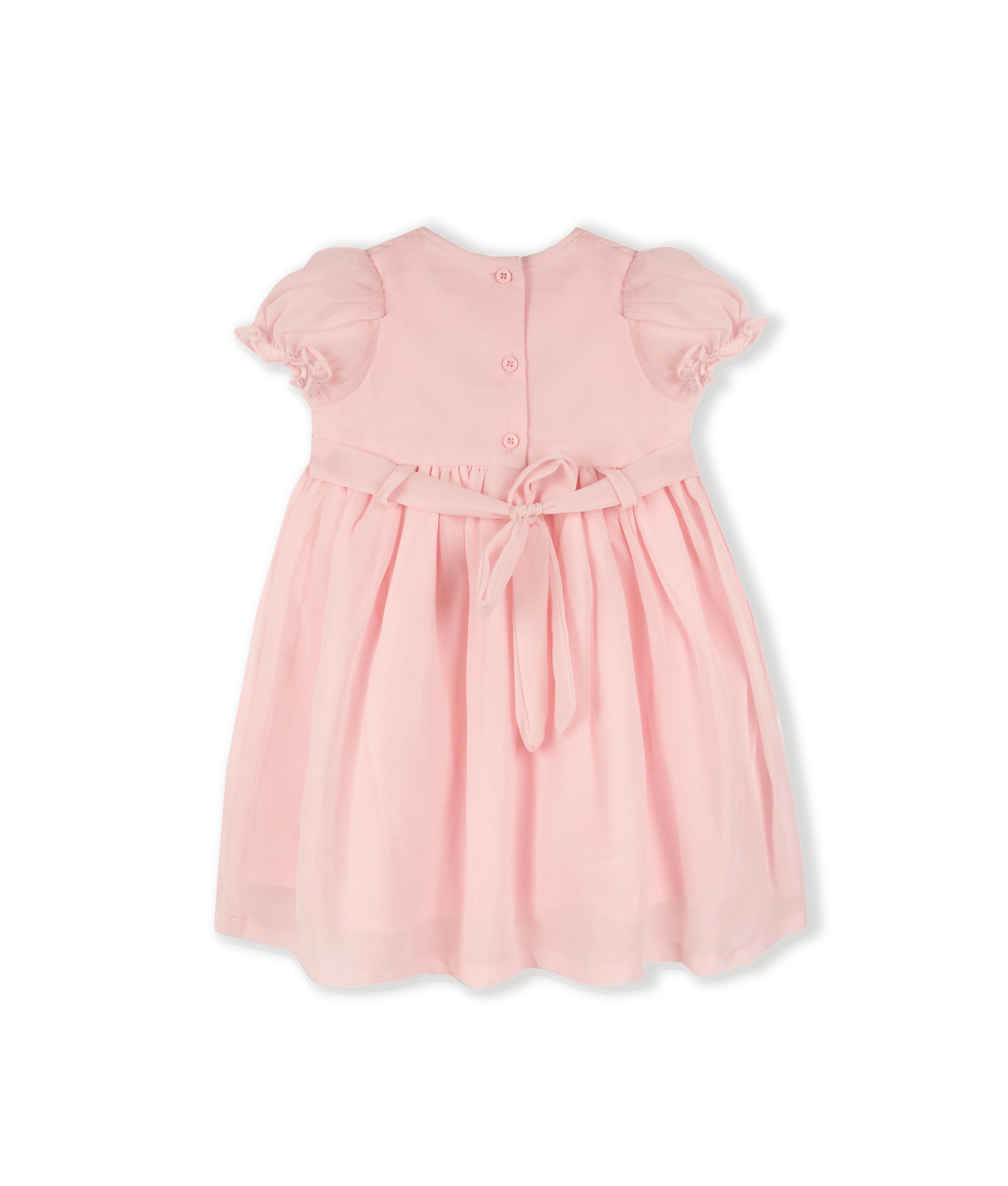 Pink Rose Georgette Hand Smocked Dress – Margot Baby Dress – 0–3M & 12–18M